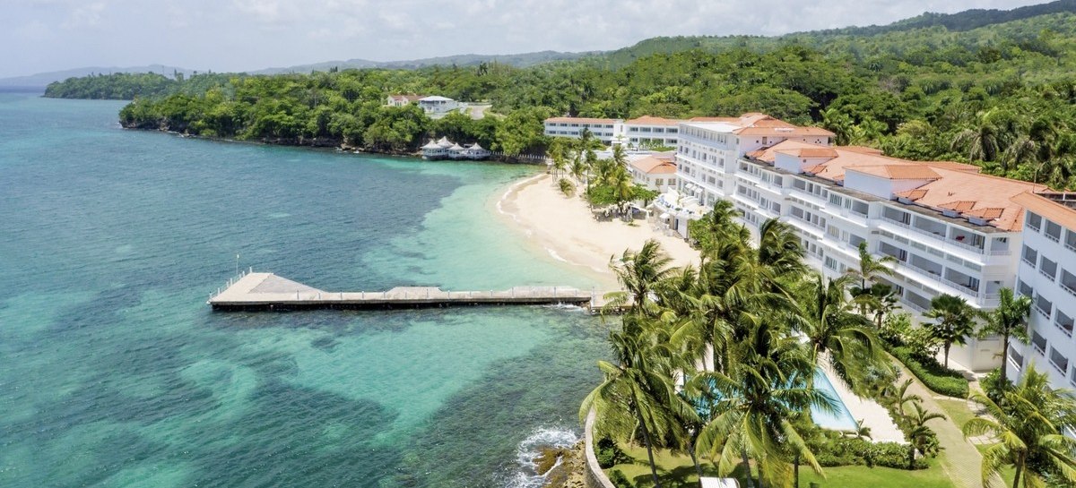 Das Resort liegt an einer Bucht mit Sandstrand; eine kleine Privatinsel ergänzt das Wasser- und Sonnenpanorama. Ocho Rios erreicht Ihr in etwa zehn Minuten per Auto, das Stadtzentrum laut Angabe in rund zwanzig Minuten. Die Lage verbindet Küstenruhe mit schneller Anbindung an Ausflüge und Restaurants der Umgebung.