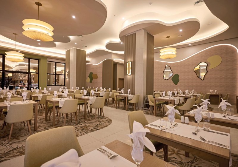 Mit sechs Restaurants und sechs Bars gestaltet Ihr Euren Tag kulinarisch vielseitig: Vom Frühstück bis zum späten Drink bleibt die Auswahl breit und alltagstauglich. Eine Swim-up-Bar (ab 18 Jahren) bringt das Glas direkt an den Poolrand – ideal für kurze Pausen zwischen Strand, Wasserpark und Abendshow.