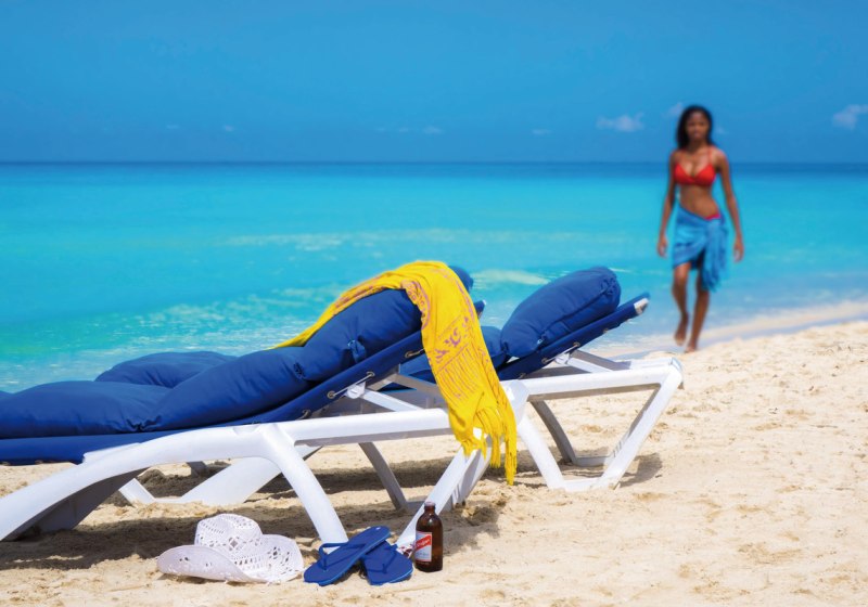 • Strandsetup: Liegestühle und Schirme sorgen für strukturierte Strandtage.