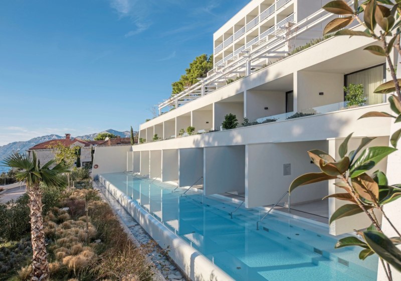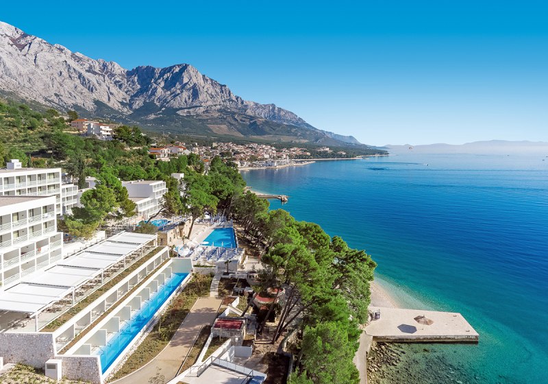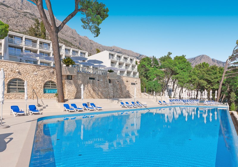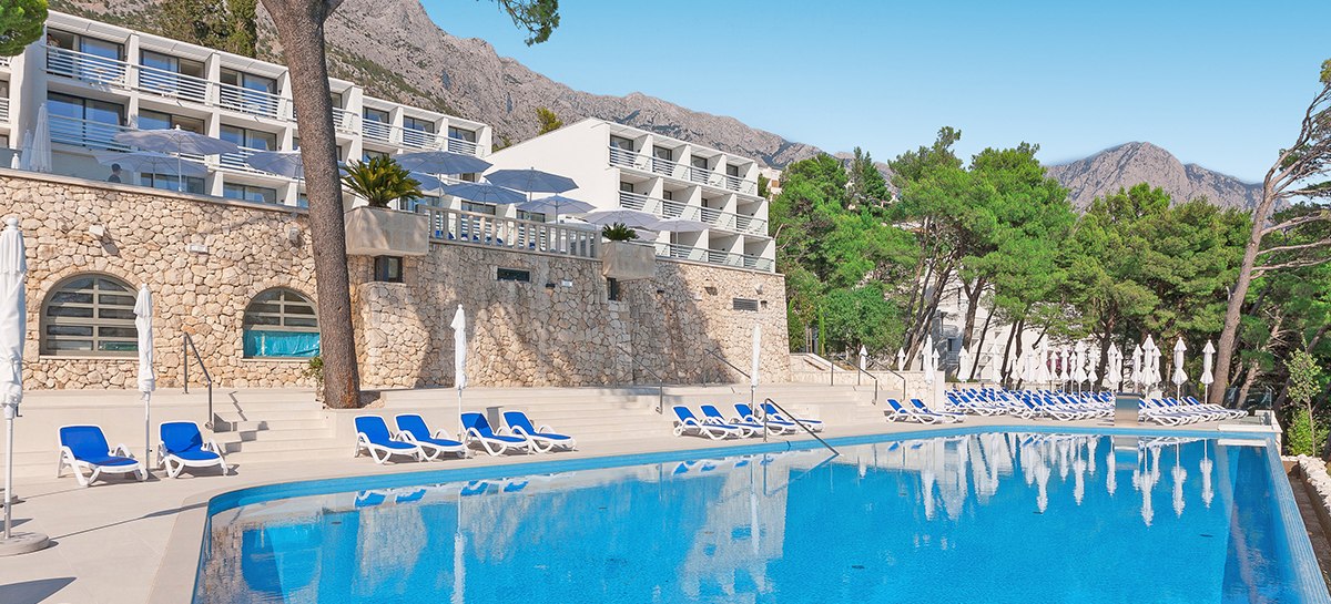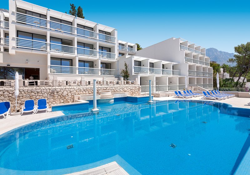 Im Berulia wohnt Ihr direkt am Kiesstrand von Brela – mit kurzen Wegen, klarer Struktur und einer angenehmen Ruhe, die den Rhythmus Eures Tages bestimmt. Zwei Außenpools, weite Sonnenterrassen und kurze Distanzen zu Bars und Restaurants schaffen einen konzentrierten Rahmen für entspannte Strandtage im Urlaub.