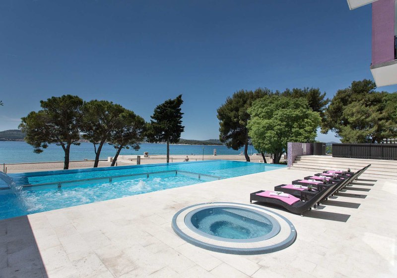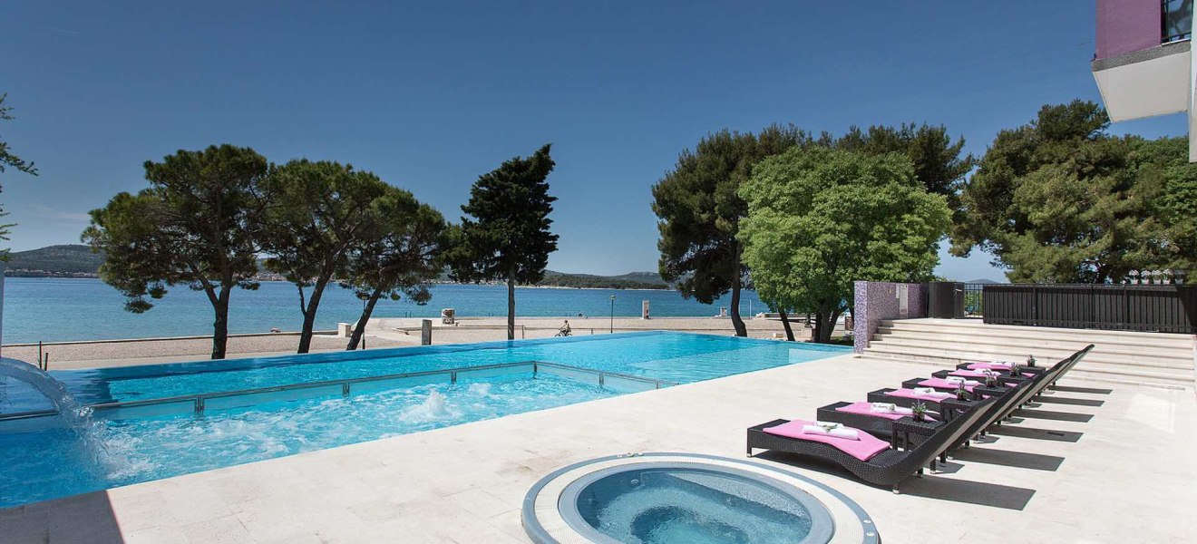 Im Schatten eines duftenden Pinienwaldes empfängt Euch Hotel Adriatic in Biograd mit klarer Linie, ruhigem Rhythmus und kurzen Wegen. Die Aussicht führt durch das Grün Richtung Küste, der Strand liegt greifbar nah. Das Haus ist übersichtlich organisiert, mit fünf Etagen und über 100 Zimmern für Paare, Familien und kleine Gruppen.
