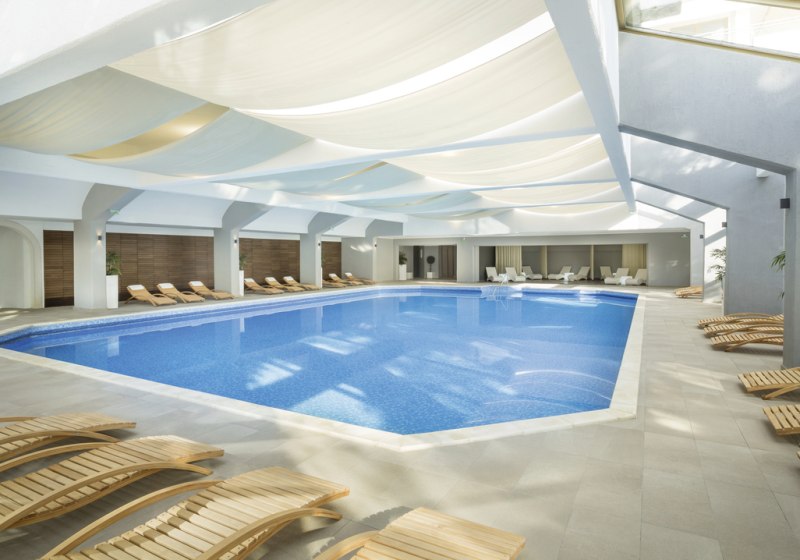 • Poolbereiche: Innen- und Außenpool mit Meerwasser für flexible Tage.