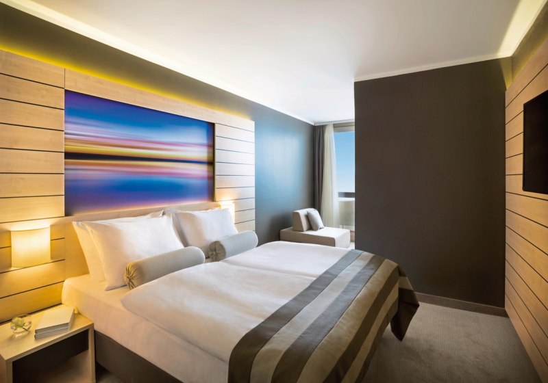Die öffentlichen Bereiche wirken geordnet und funktional, vom großzügigen Speiseraum über den Konferenzbereich bis zum Café. Mit 10 Etagen und 177 Zimmern, darunter Suiten und Familienzimmer, bleibt das Haus übersichtlich. Ihr bewegt Euch per drei Aufzüge, nutzt durchgängiges WLAN und richtet euren Urlaub flexibel mit Halbpension, Vollpension oder Frühstück.