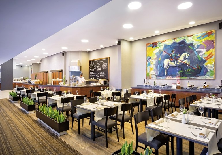 Im Hauptrestaurant esst Ihr variabel mit Frühstück, Halbpension oder Vollpension. Das À-la-carte-Restaurant bietet zusätzliche Auswahl. Vegetarische Kost und glutenfreie Mahlzeiten sind verfügbar, sodass Ihr Euren Speiseplan klar abstimmen könnt. Der Frühstückssaal unterstützt einen schnellen, geordneten Start in den Tag.