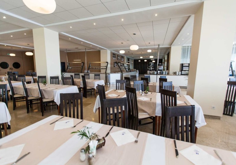 Im Restaurant startet Ihr mit Frühstücksbuffet in den Tag und kehrt abends zum Buffet zurück. Wer mehr Struktur möchte, wählt Halb- oder Vollpension; zusätzlich sind Mittagessen, alkoholfreie Getränke und spezielle Angebote hinterlegt. Eine Aperitifbar an der Rezeption setzt kompakte Treffpunkte vor oder nach dem Essen.