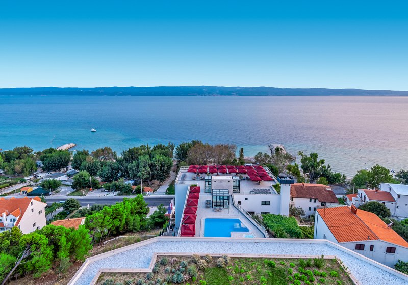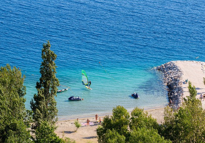 Die Lage ist klar definiert: In Duce erwartet Euch der Sandstrand gegenüber dem Hotel, etwa 50 Meter entfernt. Bis ins Zentrum von Omiš sind es rund 3 Kilometer, sodass Ihr zwischen ruhigem Strandalltag und Ausflug in die nahe Stadt mühelos wechselt. Der Flughafen Split liegt in etwa 42 Kilometern Entfernung, was die An- und Abreise planbar macht. Vor dem Hotel steht ein Parkplatz zur Verfügung, nach Verfügbarkeit kostenlos, wodurch Ihr Mietwagen flexibel nutzt. So kombiniert Ihr kurze Wege zum Meer mit guter regionaler Anbindung.