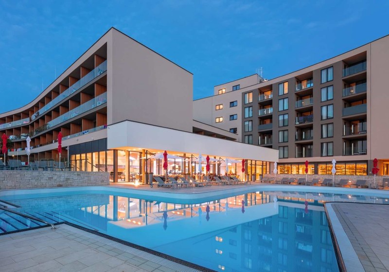 Zimmer mit Balkon oder Terrasse, Familienoptionen mit getrennten Schlafzimmern und ein klar strukturierter Wellnessbereich setzen den Rahmen. Sport von Fitness bis Windsurfen hält Euch in Bewegung, während Buffets und Bars den Tag abrunden. Eine solide Wahl für erholsame Urlaubstage an Istriens Küste – pragmatisch, nah am Strand, angenehm flexibel.