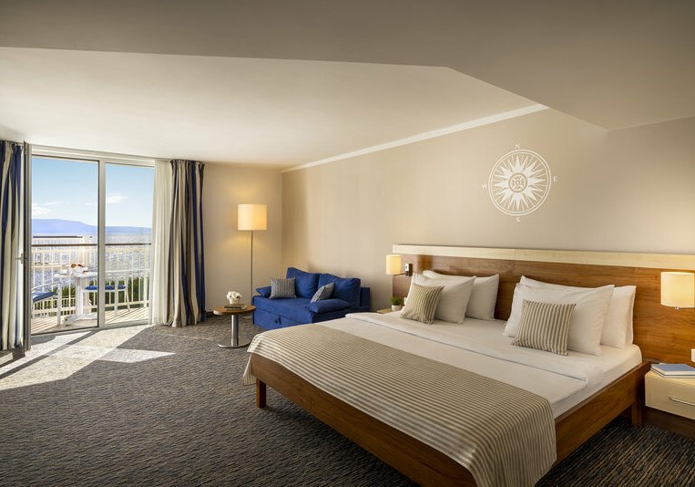 Im Valamar Sanfior Hotel & Casa wohnt Ihr in einem Ensemble aus Hotel und Casa, direkt am Meer von Rabac. Das Ambiente wirkt aufgeräumt und freundlich, mit klaren Linien und viel Licht. Familien finden strukturierte Angebote für Kinder, während Aktive die Nähe zum Wasser und das sportliche Programm schätzen. WLAN begleitet Euch im gesamten Haus, vom Lobbybereich bis zur Terrasse.