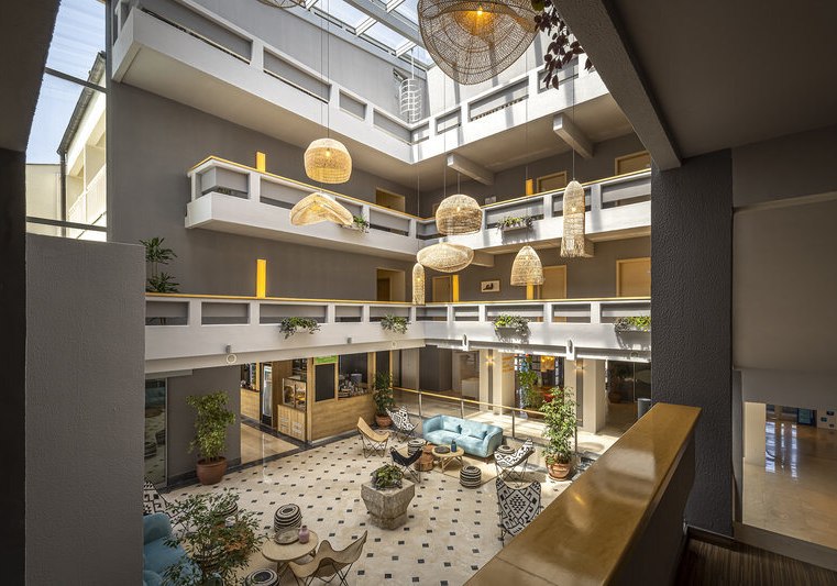 Die öffentlichen Bereiche sind klar strukturiert: Empfangshalle mit Rezeption, mehrere Lifte, WLAN im gesamten Hotel und praktische Services vom Zimmerservice bis zur Wechselstube. Ein Souvenirshop sowie ein Fahrradkeller erweitern die Infrastruktur, Parkplätze befinden sich am Haus und in der Nähe. Haustiere und Babybetten sind auf Anfrage vorgesehen.