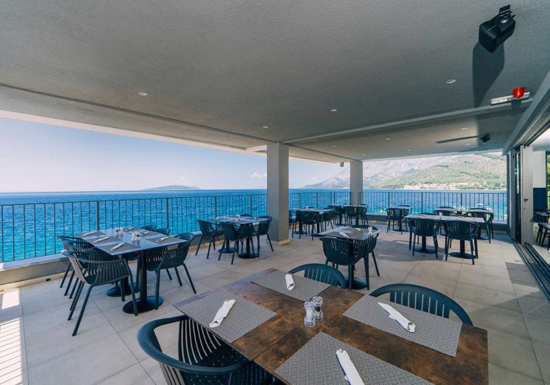 - Terrasse überdacht: Klimatisiertes Restaurant mit geschützter Außenterrasse für alle Mahlzeiten.