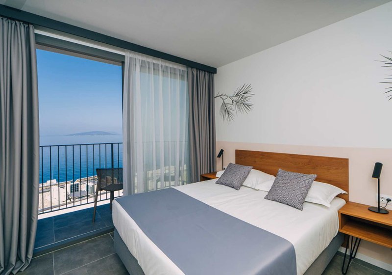 - Kompakte Zimmer: Ca. 20 m² mit Balkon, Klimaanlage und buchbarem Meerblick.