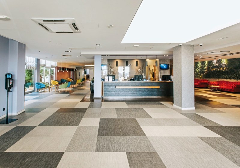 Mit 180 Zimmern, drei Trakten und fünf Liften bleibt die Wegeführung übersichtlich. Die Empfangshalle mit 24‑Stunden‑Rezeption, WLAN im gesamten Haus und Concierge‑Service bildet das organisatorische Herz. Für Tagungen stehen Konferenzraum, Projektor sowie Flipchart bereit. Parkplatz, Garage und eine Ladestation für Elektrofahrzeuge erleichtern die Anreise; Mietwagenverleih und Transferservice erweitern die Mobilität.