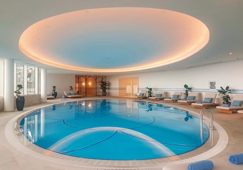 Das Anjana Spa erstreckt sich über zwei Etagen und ist klar auf Regeneration ausgerichtet. Ihr findet einen Massagesalon sowie eigene Räume für Therapieanwendungen. Ein Hamam ergänzt das Angebot um traditionelle Wärme, die Dampfsauna sorgt für wohltuende Feuchtigkeit.