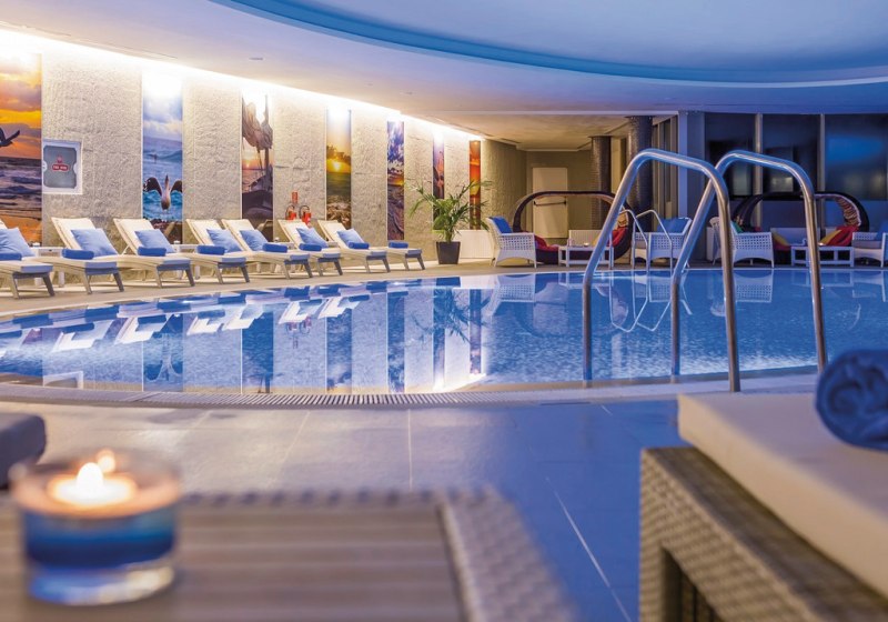 • Zwei Pools: Hallenbad und Außenpool sichern Badezeit bei jedem Wetter.