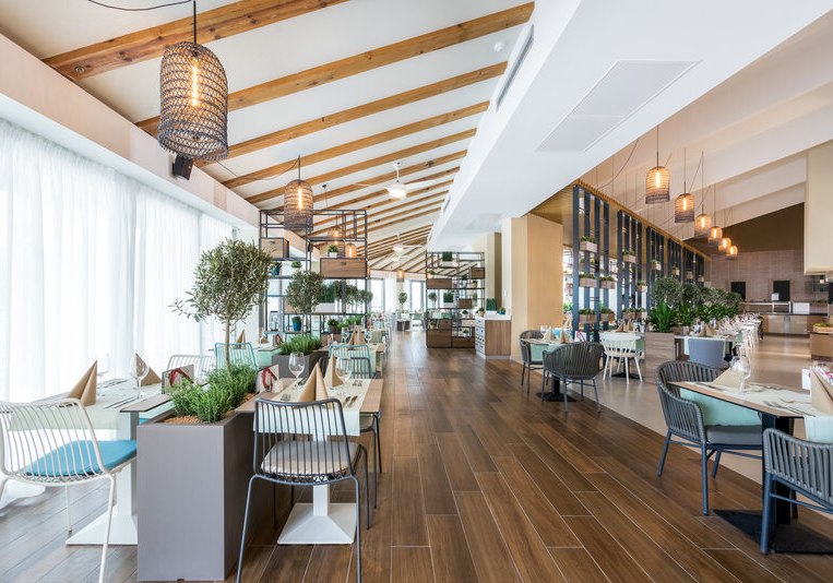 • Terrassenrestaurant: Buffet, Live-Kochen und Sitzplätze im Freien.