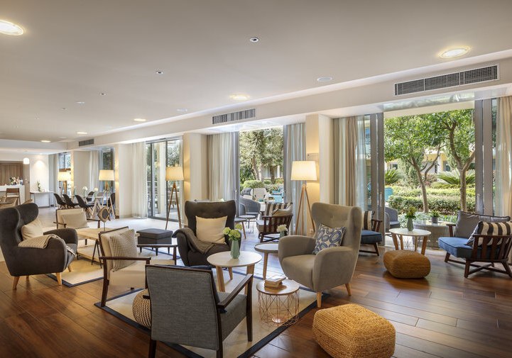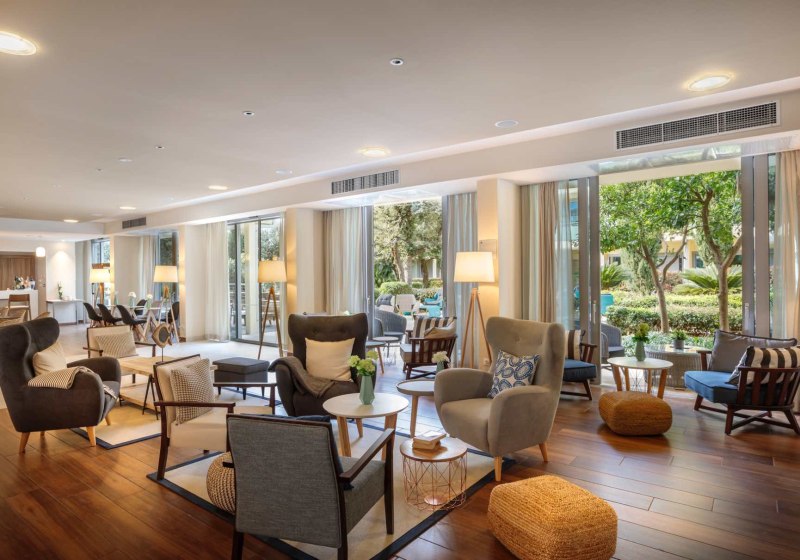 Die öffentlichen Bereiche sind klar strukturiert: Empfangshalle mit Rezeption, drei Aufzüge, durchgängiges WLAN und eine Internetecke. Auf den Sonnenterrassen flaniert Ihr zwischen Außenmöbeln und Liegestühlen, während Shops, Souvenir- und Snackmöglichkeiten kurze Wege sichern. Ein Garten, Poolbereiche und ruhige Sitznischen sorgen für angenehme Übergänge zwischen Aktivität und Pause.