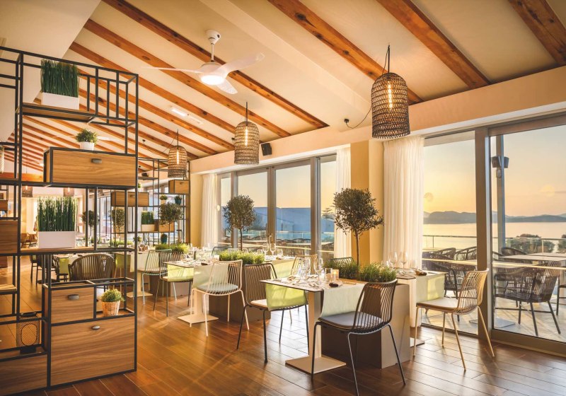 Ihr wohnt nah an einem Kiesstrand mit Blauer Flagge und bleibt dennoch in Reichweite der Altstadt. Sonnenterrassen, zwei Infinity-Außenpools und ein Hallenbad strukturieren Eure Tage zwischen Schwimmen, Lesen und leichten Aktivitäten. Abends sorgt Live-Musik für leise Töne, tagsüber bringt ein abwechslungsreiches Programm Bewegung ins Spiel. Hunde sind auf Anfrage willkommen – praktisch, wenn Ihr im Urlaub nicht auf Euren Vierbeiner verzichten möchtet. Highlight: Adults-Fokus ohne Abschottung – erholsame Zonen, kinderfreundlich durchdacht.