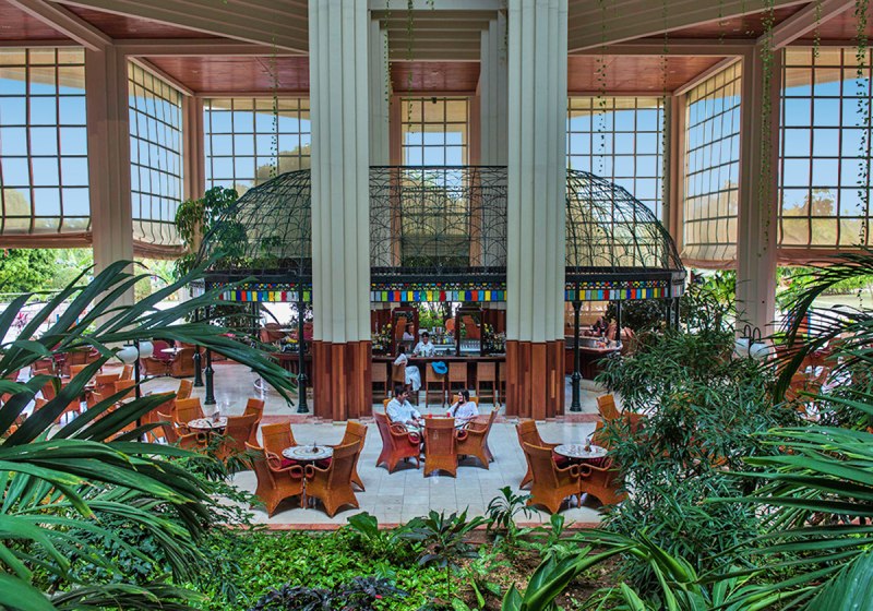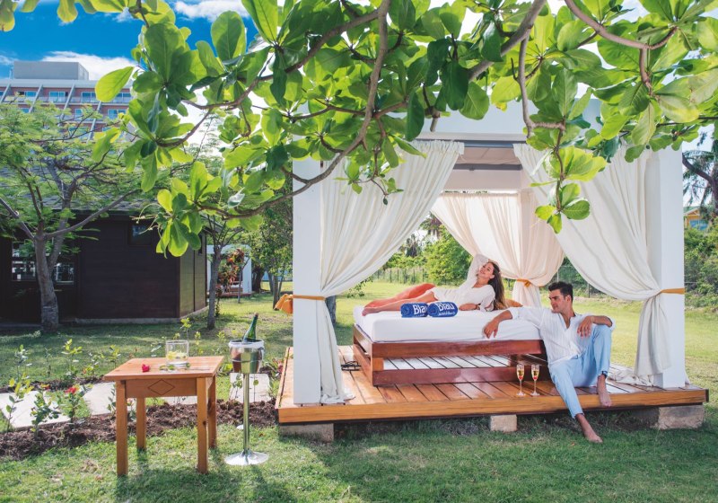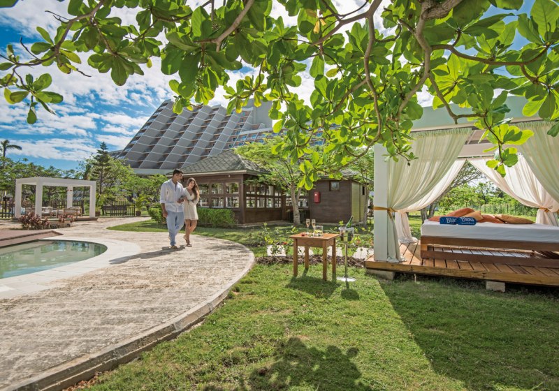 Servicepunkte liegen klar im Blick: Einkaufspassage mit Souvenir-, Zigarren- und Rumshop, Friseur, Beauty-Salon, Apotheke, Gesundheits- und medizinischer Service, Geldwechsel sowie Wäsche- und Wäschereiservices. Sportflächen reichen von zwei Tennisplätzen über einen Multifunktionsplatz bis zu Tischtennis und Bogenschießen. Am Strand stehen Schirme, Liegen und Badetücher bereit. Highlight: Pyramiden-Atrium mit klarer Wegeführung.