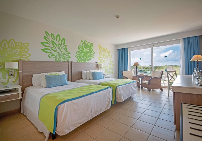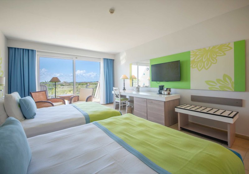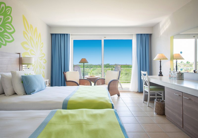 Ihr wohnt in Zimmern mit Bad/WC, Föhn, Klimaanlage, Safe, Telefon, Sat-TV und Minibar. Ein Balkon oder eine Terrasse öffnet den Blick in den Garten, zur Bucht (Bay View) oder aufs Meer. Zwei Queensize-Betten sind üblich; bei Belegung mit drei Erwachsenen ist ein Zusatzbett vorgesehen.