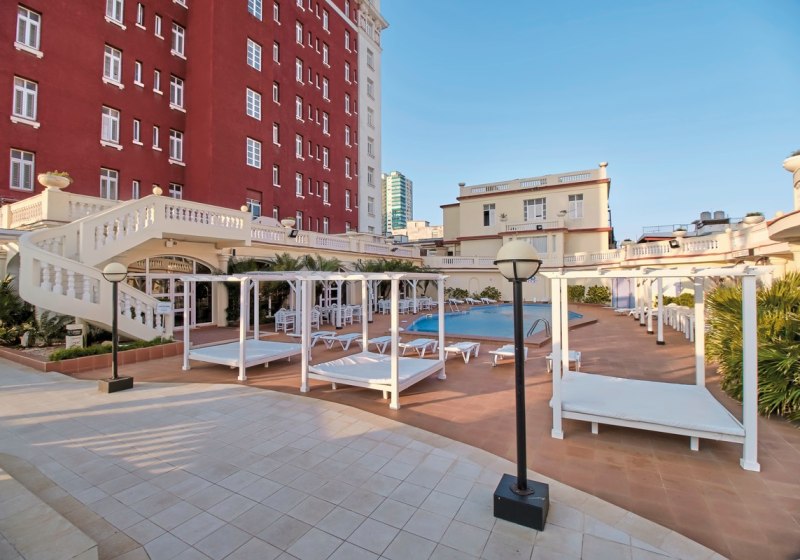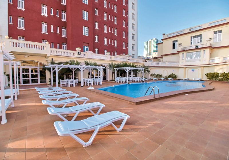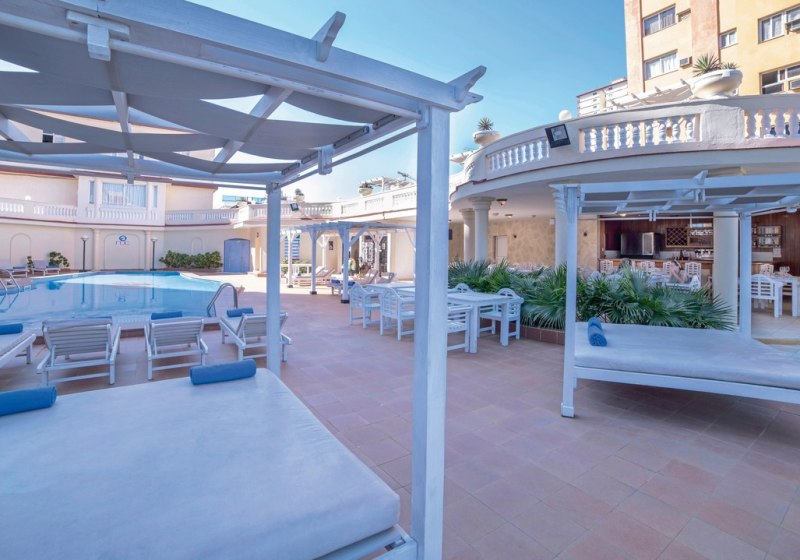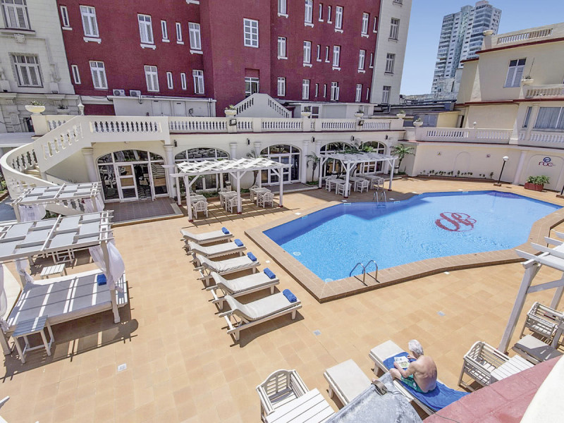 Rund um den Pool mit Sonnenterrasse und balinesischen Betten entspannt Ihr nach Streifzügen über den Malecón, nur etwa 200 Meter entfernt. Zwei Restaurants, Lobby-Bar, Terrassencafé und eine Pool-Snackbar versorgen Euch ganztägig. Mit Live-Musik an drei Abenden pro Woche klingt Euer Tag stilvoll aus, während die zentrale Lage kurze Wege ermöglicht.