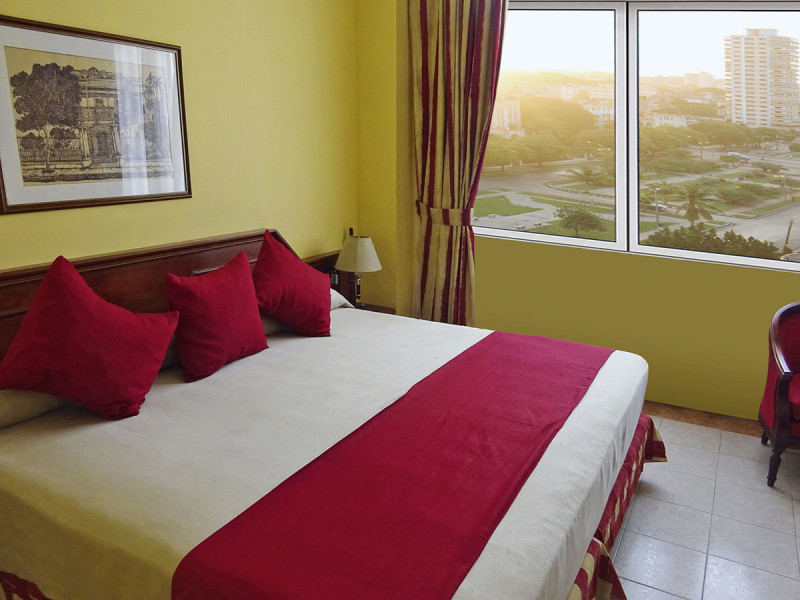 Im Hotel Roc Presidente wohnt Ihr in einem Haus mit Geschichte: 1928 erbaut, ehemals das erste Hochhaus Havannas und 2000 umfassend renoviert. In der Lobby entdeckt Ihr ein Museum mit über 400 Kunstwerken – ein markanter Auftakt für einen urbanen Aufenthalt zwischen Architektur, Kunst und dem Lebensgefühl von El Vedado.