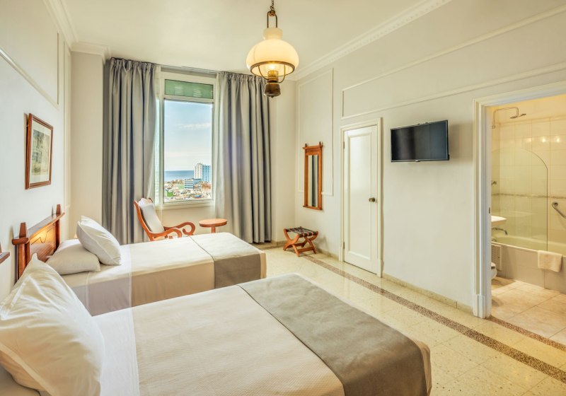- Stadtblick: Zimmer mit Stadtblick zeigen Havannas Fassaden und Plätze.