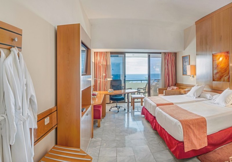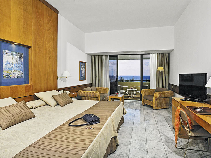 Die Zimmer ab ca. 46 m² sind funktional aufgeteilt in Schlafzimmer, Badezimmer und Balkon. Ihr nutzt Klimaanlage, LCD-Sat-TV, Safe, Minibar sowie Kaffee- und Teezubereiter. Das Bad bietet Badewanne, Pflegeprodukte und Haartrockner; Telefon im Schlafzimmer und im Badezimmer sorgt für kurze Wege.