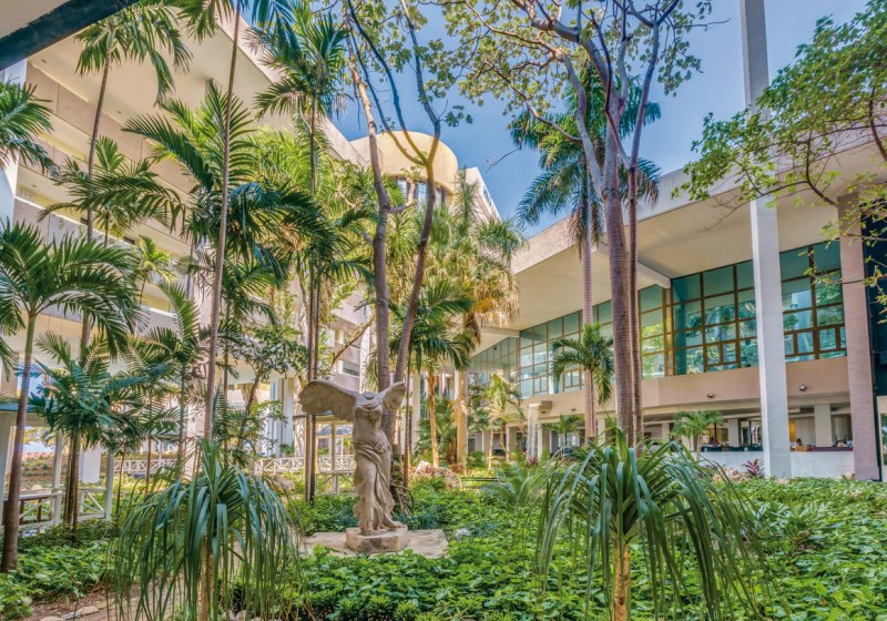 Weitläufige Außenbereiche mit Pool, Liegestühlen, Sonnenschirmen und Garten schaffen Ruhepunkte zwischen Terminen. Innen überzeugen klimatisierte Lobby, Rezeption und Concierge-Service. WLAN ist inklusive; Kofferaufbewahrung und Einparkmöglichkeiten erleichtern An- und Abreise. Der Shuttle nach Alt-Havanna verbindet Komfort und Stadterlebnis.