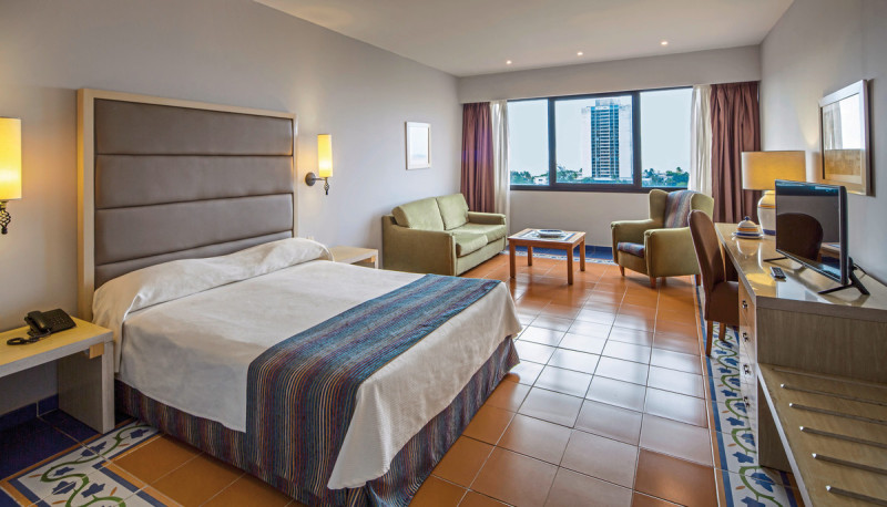 Mit 427 Zimmern, 24‑Stunden-Rezeption und Lifte erreicht Ihr alle Bereiche bequem. Ihr trefft Euch in der Lobby-Bar, gleitet an die Pool-Snackbar oder wählt zwischen Buffet und À‑la‑carte‑Restaurant. Der Stil wirkt unaufgeregt, die Abläufe sind auf Städtereisende, Geschäftsreisende und Tagungsgäste zugeschnitten. Wer nach Erkundungen in Havanna entspannen möchte, nutzt Fitnessraum, Sauna und Massagen (teils gegen Gebühr) oder zieht Bahnen im großen Pool.