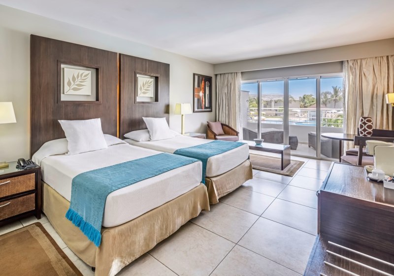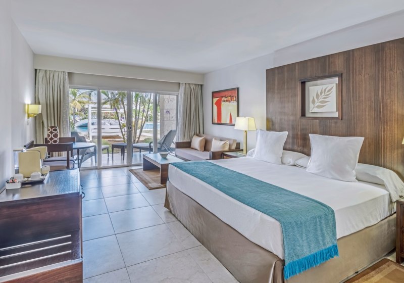 Die Betten sind überwiegend als Queen- oder Kingsize ausgeführt. Ausblicke variieren zwischen Garten, Pool und Meer, Verdunkelungsvorhänge und Kissenauswahl unterstützen erholsame Nächte. Als besondere Kategorien warten die Junior Suite Royal Service in erster Strandreihe mit eigener Terrasse sowie die Master Junior Suite Royal Service Swim-Up mit Hydromassagewanne und direktem Poolzugang.