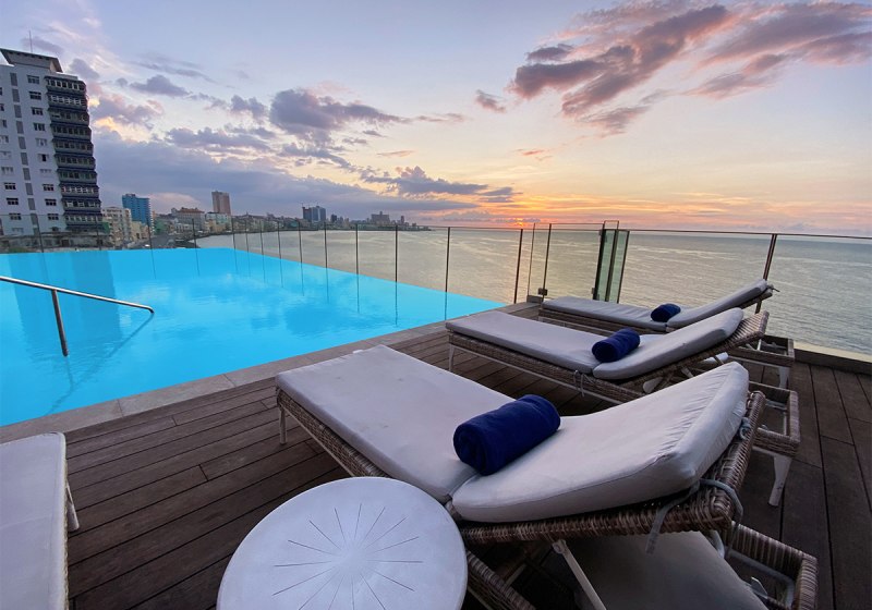 - Malecón-Blick: Rooftop-Pool eröffnet Panorama über Malecón und Meer.