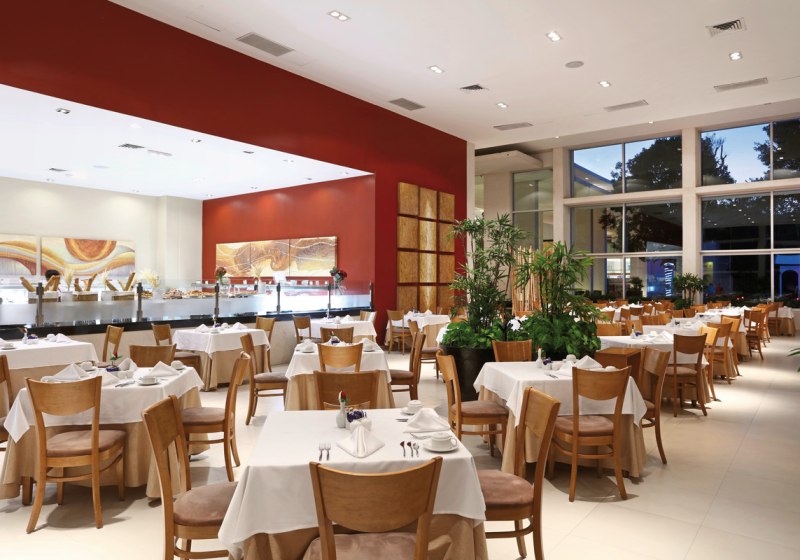 Die Anlage wirkt strukturiert und großzügig: mehrere dreistöckige Gebäude, vier Außenpools und zahlreiche Liegen an Pool und Strand. WLAN ist im gesamten Hotel verfügbar, Badetücher liegen an Pool und Strand bereit. Ein interner Shuttleservice verbindet Bereiche und bringt Euch bequem zum Strand.