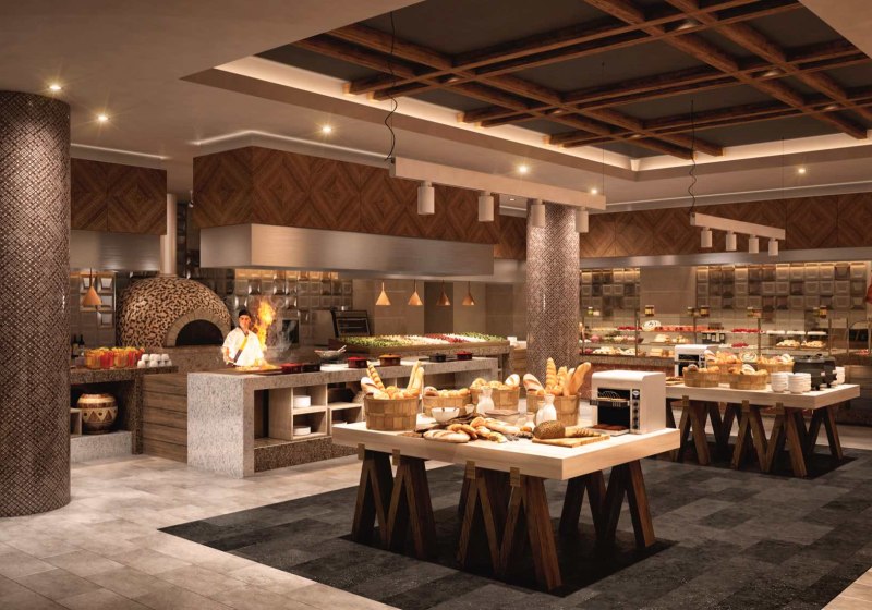 Kulinarisch wählt Ihr zwischen dem Buffetrestaurant Flavours und vier Spezialitätenrestaurants: Agua Bendita mit mexikanischer Küche und Steaks, Satsu mit asiatischen Einflüssen, Olios mit mediterrischer Küche sowie Vora Mar mit Seafood. All-Inclusive umfasst Frühstück, Mittag- und Abendessen, Snacks sowie alkoholfreie und alkoholische Getränke. Live-Kochen setzt frische Akzente.