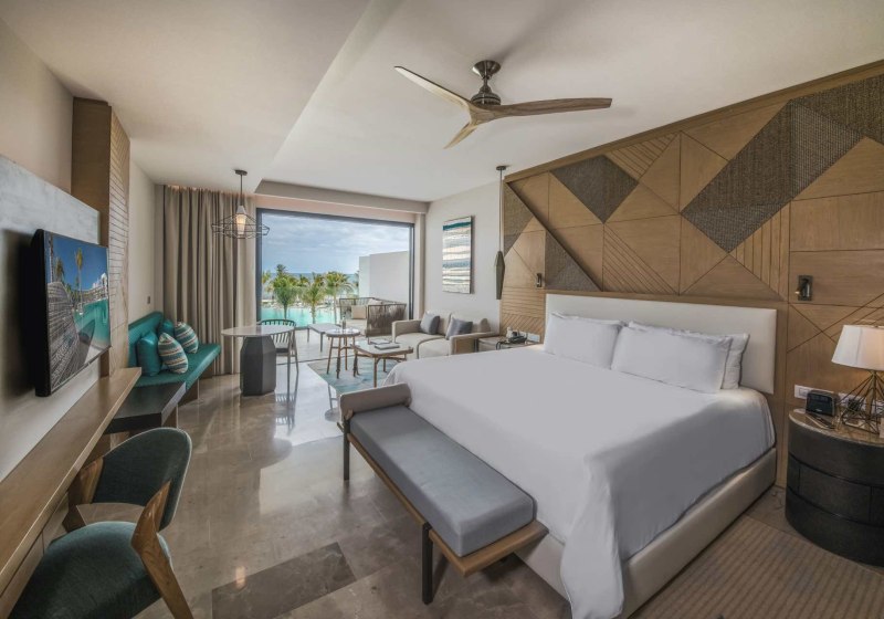 Haven Riviera Cancun bietet 435 Zimmer, viele davon mit zwei Queensize-Betten. Markant sind die Juniorsuiten ab etwa 42 m² mit King-Size-Bett, Regendusche, Jacuzzi und Balkon mit Sitzgelegenheit. Dazu gehören Föhn, Kabel-TV, Telefon, WLAN, Safe, Dockingstation-Wecker, Nespresso-Kaffeemaschine, Minibar, Deckenventilator und Klimaanlage.