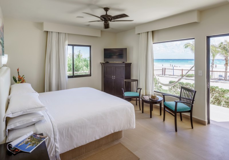 Das Resort liegt in Playacar, direkt am feinsandigen Strand und nahe Playa del Carmen. Ihr erreicht die lebendige Stadt in etwa 20 Gehminuten, während Cancún rund 65 Kilometer entfernt ist. Ein 18-Loch-Golfplatz liegt in Gehweite, Einkaufsmöglichkeiten befinden sich in kurzer Distanz.