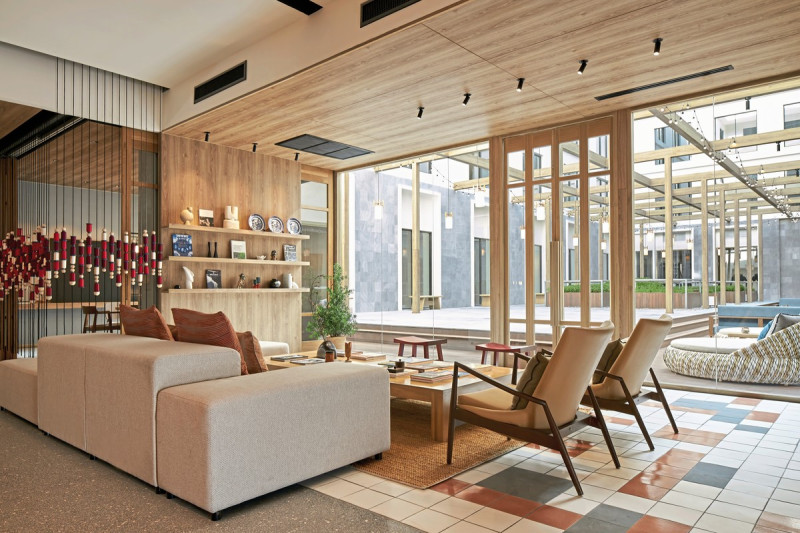 Im vierten Stock der I'm Chinatown Community Mall empfängt Euch Asai Bangkok Chinatown mit urbaner Klarheit und aufmerksam kuratierten Details. Ihr wohnt mitten in Bangkoks Chinatown und nutzt die direkte Mall-Anbindung als praktisches Drehkreuz. Der CO₂-neutrale Energieverbrauch und ein eigener Bio-Kräutergarten geben Eurem Städtetrip eine bewusste Note.