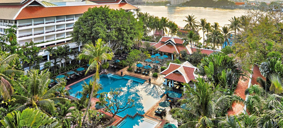 Im Anantara Riverside Bangkok Resort wohnt Ihr direkt am Westufer des Chao-Phraya-Flusses und erlebt Bangkok mit Blick auf vorbeiziehende Boote, üppige Gärten und weite Wege zwischen Wasser und Grün. Das Resort richtet sich an Familien, City-Reisende und Wellnessliebhaber, die eine ruhige Basis mit guter Anbindung schätzen. Die großzügige Gartenanlage mit Swimmingpool, Jacuzzi und Sonnenterrassen schafft Raum, um anzukommen, bevor Ihr mit dem hoteleigenen Shuttle-Boot den Fluss kreuzt. Highlight: Flusslage mit eigenem Shuttle-Boot, komfortabel und klar strukturiert.