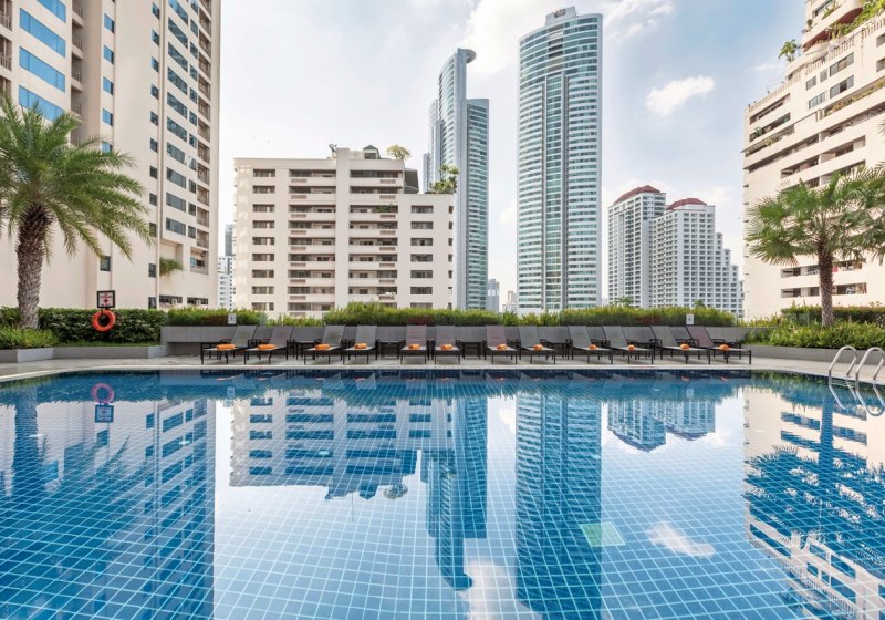 Hier plant Ihr Eure Stadttouren präzise, stärkt Euch in zwei Restaurants mit internationaler und landestypischer Küche und zieht Euch zwischendurch an den Pool mit Liegestühlen zurück. Familien profitieren von kindgerechten Bereichen, City-Traveller von der Lage an der Sukhumvit Soi 18 und der Nähe zur Sky-Train-Station. So fühlt sich Euer Stadtaufenthalt geordnet, vielseitig und unkompliziert an.