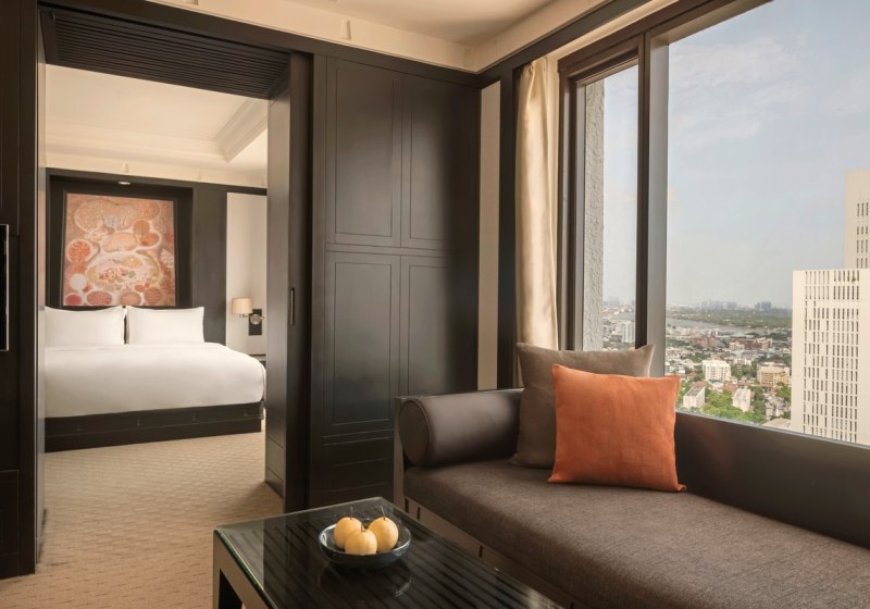 Im Banyan Tree Bangkok erlebt Ihr ein urbanes Rückzugsgefühl hoch über Bangkoks geschäftigen Achsen von Sathon und Silom. 61 Etagen, klare Linien und bodentiefe Fenster prägen die Atmosphäre. Die Club-Lounge im 19. Stock setzt einen privaten Akzent, während stabiles WLAN in der gesamten Anlage Euren Rhythmus trägt. Highlight: Skyline-Momente. Rooftop-Bar mit weitem Stadtblick über Sathon/Silom.