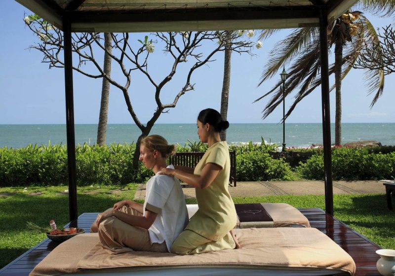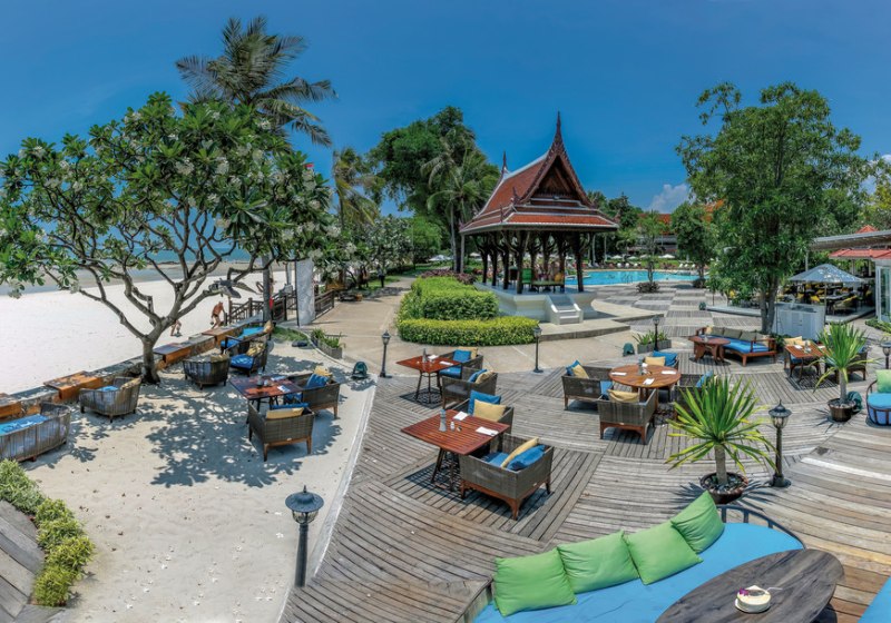 Centara Grand Beach Resort & Villas Hua Hin vereint direkte Strandlage, historische Architektur und eine vielseitige Infrastruktur mit vier Pools, Spa Cenvaree und drei Spezialitätenrestaurants. Familien profitieren von Miniclub und Kinderbecken, Aktive von Fitness, Kursen und Courts. Das Zentrum liegt nur wenige Schritte entfernt.