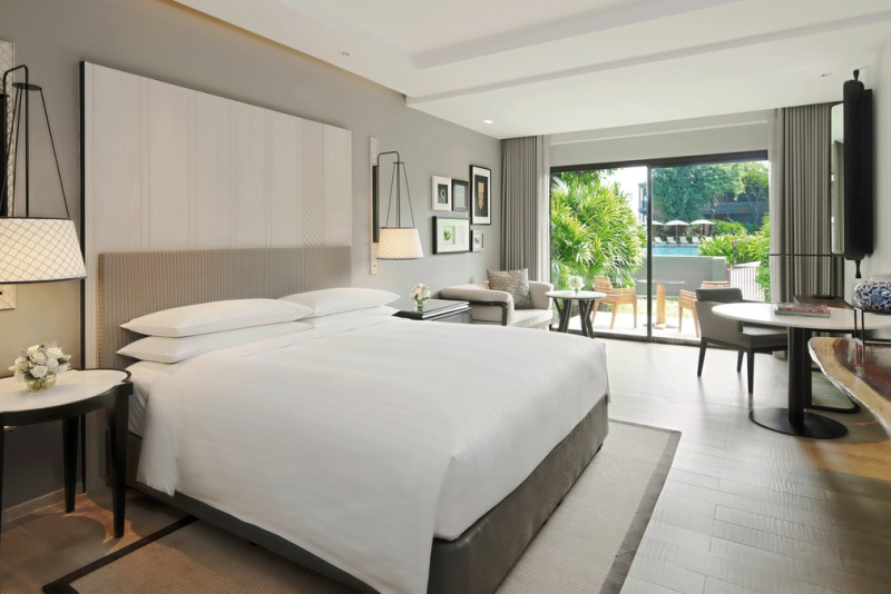 Alle Zimmer im Hua Hin Marriott Resort & Spa sind klimatisiert und verfügen über eine Minibar und einen Safe. Genießen Sie von Ihrem Balkon oder der Terrasse aus wahlweise einen Garten- oder einen Meerblick. Von einigen der Zimmer aus haben Sie sogar einen direkten Zugang zum Pool. Alle Zimmer sind mit typisch thailändischen Einrichtungselementen versehen. Insgesamt stehen Ihnen sieben verschiedene Zimmerkategorien zur Verfügung. Neben den Superior- und Deluxe Zimmern sind vor allem die geräumigen Suiten bei den Gästen sehr beliebt. Diese sind nicht nur mit Kingsize Betten, sondern auch mit einem eigenen Whirlpool ausgestattet.Gastronomie / Restaurants