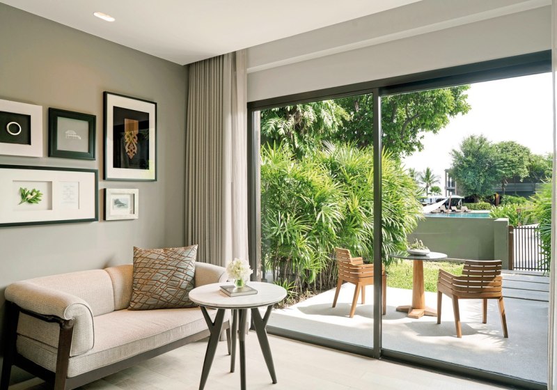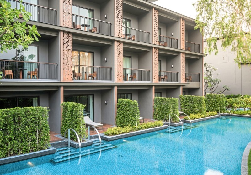 Die 5-Sterne-Klassifizierung, WLAN im gesamten Hotel und durchdachte Services prägen den Aufenthalt. Zwei Restaurants bedienen thailändische wie internationale Vorlieben, an der Poolbar erfrischt Ihr Euch tagsüber. Zimmer ab etwa 39 Quadratmetern bieten klare Ausstattung und Außenbereich. So fühlt sich Euer einen Thailand-Urlaub in Hua Hin konzentriert, komfortabel und gut organisiert an.