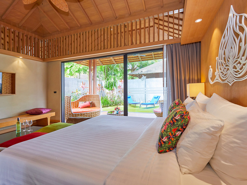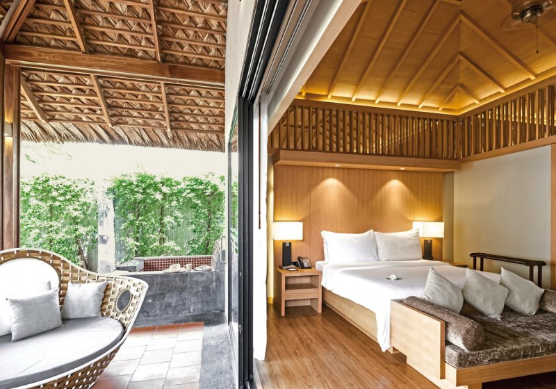 Ausgewählte Villen erweitern Euren Komfort um freistehende Badewanne, Jacuzzi, Privatpool oder einen separaten Wohnbereich. Insgesamt bietet das Resort 177 Nichtraucherunterkünfte; entstanden 2011 und 2013 renoviert. Je nach Lage genießt Ihr Garten- oder Poolblicke, mit Raum zum Zurückziehen und Ankommen.