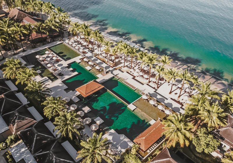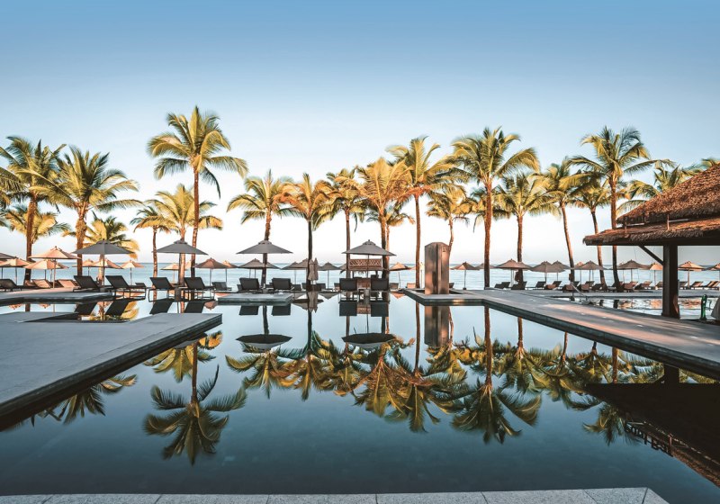 Villen bilden das Herz des Resorts und geben Euch Raum für private Auszeiten, ob auf der Terrasse oder unter der Regendusche. Wer mehr möchte, wählt ausgewählte Villen mit Jacuzzi, freistehender Wanne, Privatpool oder separatem Wohnbereich. Kulinarisch warten mehrere Restaurants und Bars, inklusive Strandbar, auf Euch – leicht, entspannt, mit Blick auf Meer und Garten.