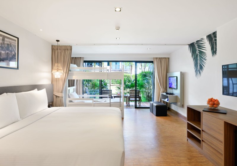 Familien finden durchdachte Optionen mit Etagenbetten und Kinderclub. Paare wählen Suiten oder Villen mit Rückzugsmomenten, während Aktivliebhaber das Fitnesscenter und Tischtennis schätzen. Kulinarisch wählt Ihr zwischen mehreren Restaurants und einer Poolbar. Ein Spa mit traditionellen Thai-Massagen rundet den Aufenthalt ab. Highlight: Breite Zimmerauswahl von Familienzimmern bis Pool Villen mit privatem Pool.