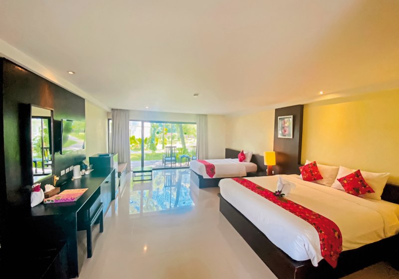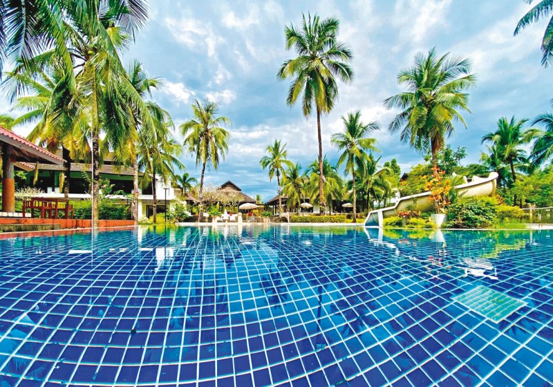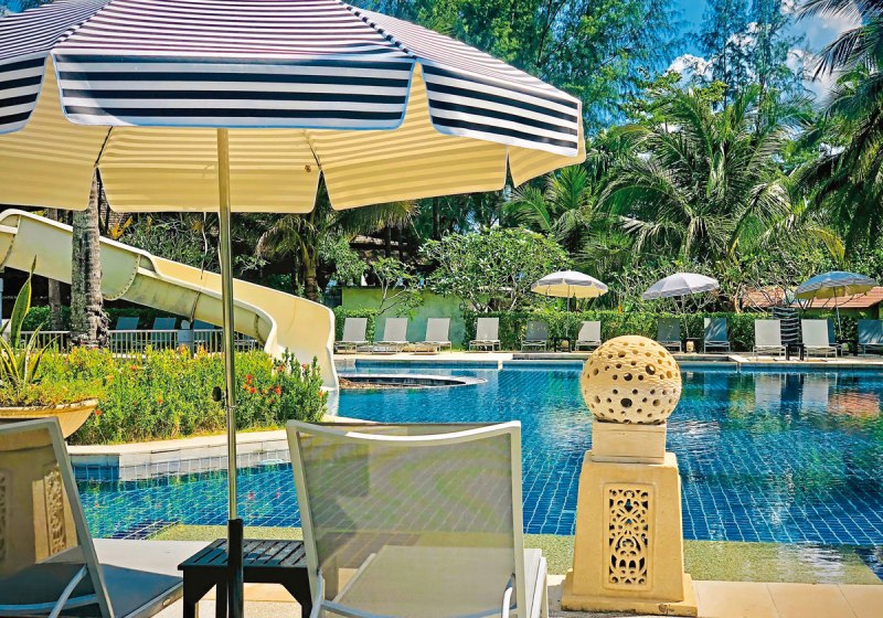 Im Palm Galleria Resort wohnt Ihr in einem entspannten Resort-Setting am Pakarang Beach in Khao Lak, mit 74 Zimmern in behaglicher Grösse und kurzen Wegen. Die Gartenanlage, die Sonnenterrasse und der Aussenpool prägen den Tag, während Ihr an der Poolbar unkompliziert zusammenkommt. Familien fühlen sich mit Kinderpool, Kindermenü und Babybett auf Anfrage gut aufgehoben, Strandreisende schätzen die Nähe zum flach abfallenden Sandstrand, der durch eine Strasse von der Anlage getrennt liegt.