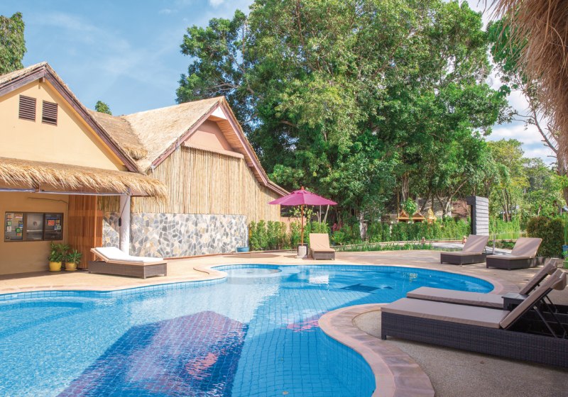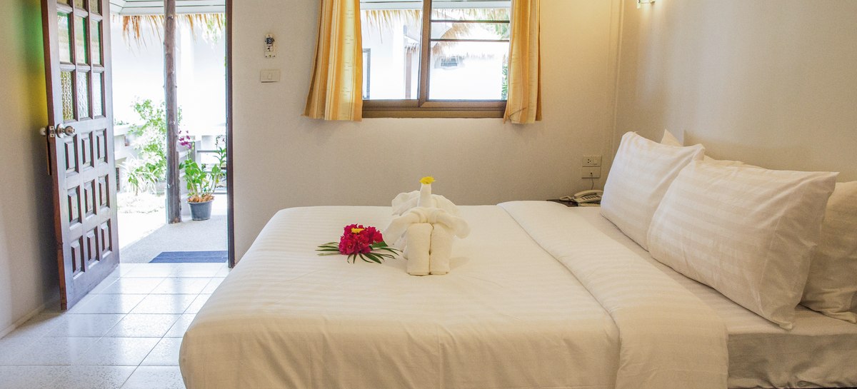 Am Maenam Strand an der Nordküste von Koh Samui wohnt Ihr in einem überschaubaren Resort mit 42 Wohneinheiten, direktem Sandstrand und viel Platz im Grünen. Ihr spürt eine lässige Strandatmosphäre: kurzer Weg zum Meer, ruhige Wege durch den Garten, dazu ein Außenpool mit Sonnenliegen und Schirmen.