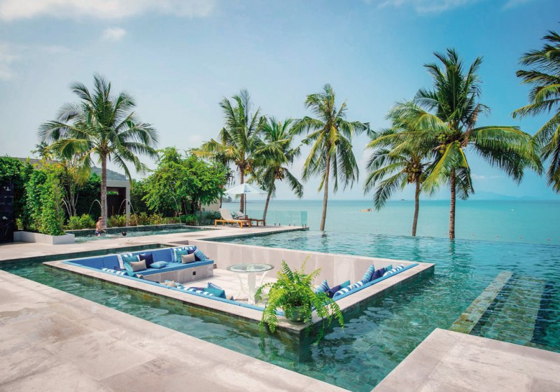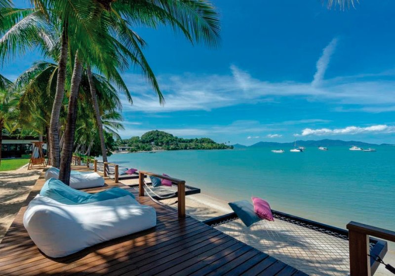 - Direktlage Strand: Unmittelbar am Sandstrand von Bophut mit Infinity-Pool am Ufer.