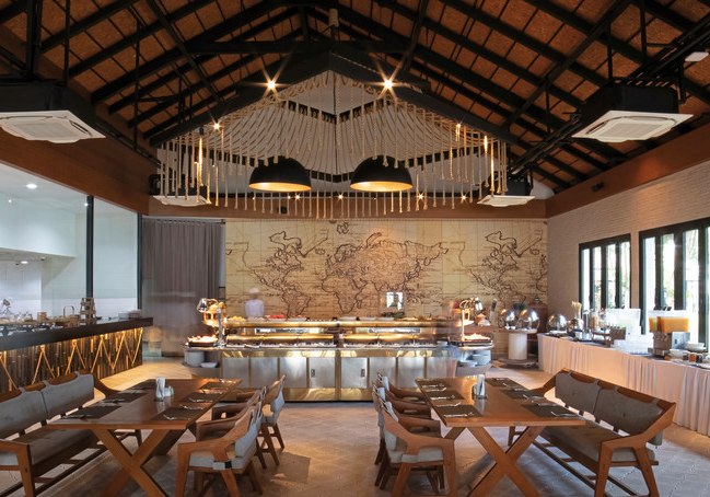Zwei Säulen tragen die Küche: ein À-la-carte-Restaurant und ein Buffetrestaurant, beide mit Terrasse. Serviert werden asiatische, landestypische und internationale Gerichte – vom frühen Frühstück bis zum Abendessen. Das Angebot lässt sich über Halbpension oder Vollpension strukturieren, Kindermenüs sind vorgesehen.