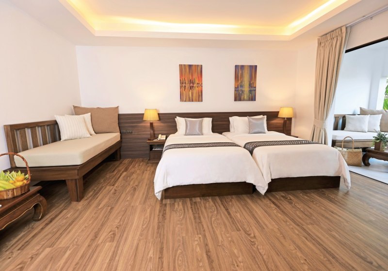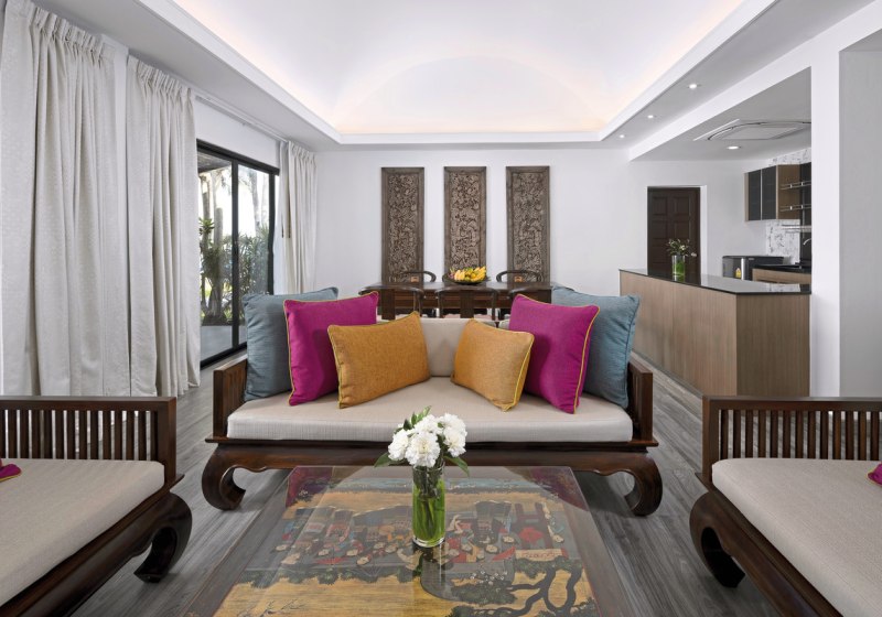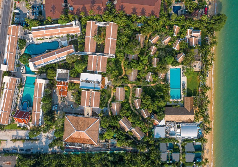 Die Architektur verteilt sich auf neun Gebäude, mit einem dreistöckigen Hauptgebäude und insgesamt 189 Wohneinheiten. Die öffentlichen Bereiche sind klimatisiert, WLAN trägt durchgängig. Familien freuen sich über Kinderpools und Betreuungsangebote, Paare über Plätze mit Blick aufs Wasser. Die Hotelsprache ist Englisch und Thai, der Service wirkt aufmerksamer Gastgeber statt Bühne. Highlight: Geteilte Ocean- und Tropical-Zone bringt klare Wahl zwischen Meer und Garten.